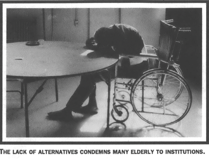 The lack of alternatives condemns many older citizens to spending their final years in an institution. Even nursing homes that provide good medical care tend to be sterile and depressing places that isolate residents from their homes and communities. Doctors in some of the cleanest and most comfortable homes in the region report that the loneliness and impersonal environment of institutional care have driven some patients to kill themselves, and have prompted many more to look forward to death.