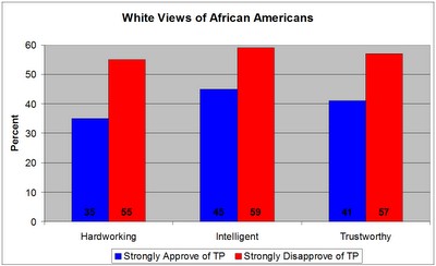 Tom Schaller at 538.com put these findings into helpful graphs, which show how the racial views of white tea party sympathizers vary from those who oppose the tea party:
