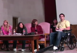 The photo above is a still from FluxRostrum's video of the panel discussion. Pictured from left to right are Robin Young; Cherri Foytlin; Long Beach, Miss. resident Denise Rednour; and Paul Doomm's mother, Kathy Doomm, with her son in the wheelchair.