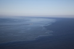 Hurricane Creekkeeper John Wathen of the Waterkeeper Alliance first heard reports about the slick on Saturday and flew over the site for a firsthand look. He shot the photo at right, and more images from his flight can be seen here.