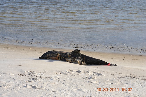 (Photo of dead dolphin by Laurel Lockamy via Bridge the Gulf.)