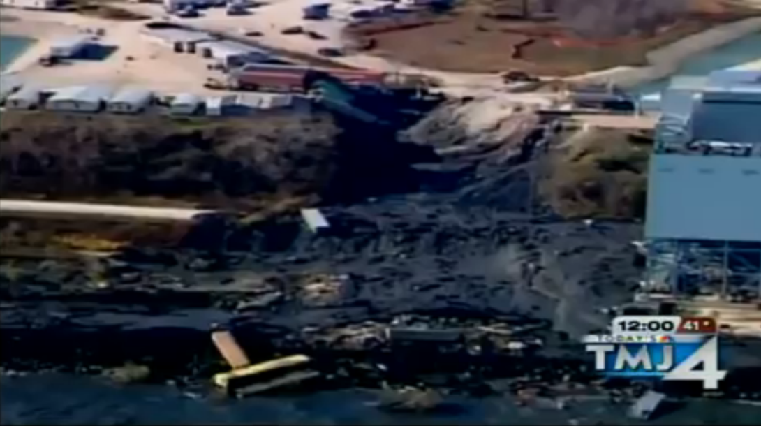 (Shot of Wisconsin coal ash spill is a still from WTMJ News video.)
