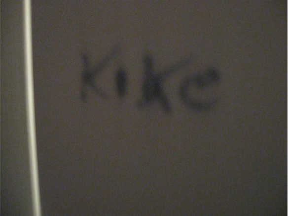 So I look at this ugly slur, scrawled in Sharpie and then apparently painted over on the inside of a closet, as in a way a small blessing. How fortunate we are -- with healthy children, a loving family and friends, a warm house, enough money to pay some people to build us a closet -- that we have nothing more terrifying to face this Passover than this small, mean, cowardly expression of ugliness and hatred. We have, at the moment, laws to protect us, as much as laws can, from physical violence. We have safe and comfortable lives, in which a slur like this means only, "Heave a sigh and talk to the contractor," not "Grab what you can carry and run."