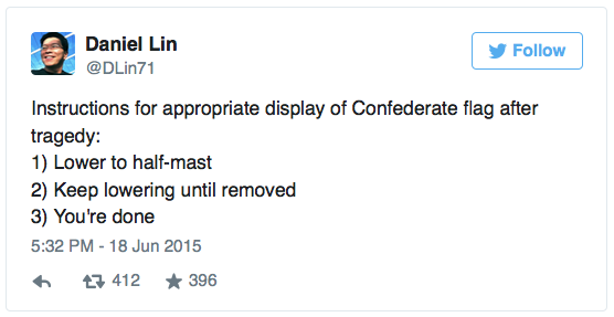 Among those saying that the most recent act of terrorism against black people in South Carolina should be taken as an opportunity to relegate the Confederate flag and the hatred it represents to the dustbin of history, was journalist and author Ta-Nehisi Coates, who penned a scathing indictment for The Atlantic with the simple title: "Take Down the Confederate Flag — Now." He wrote: