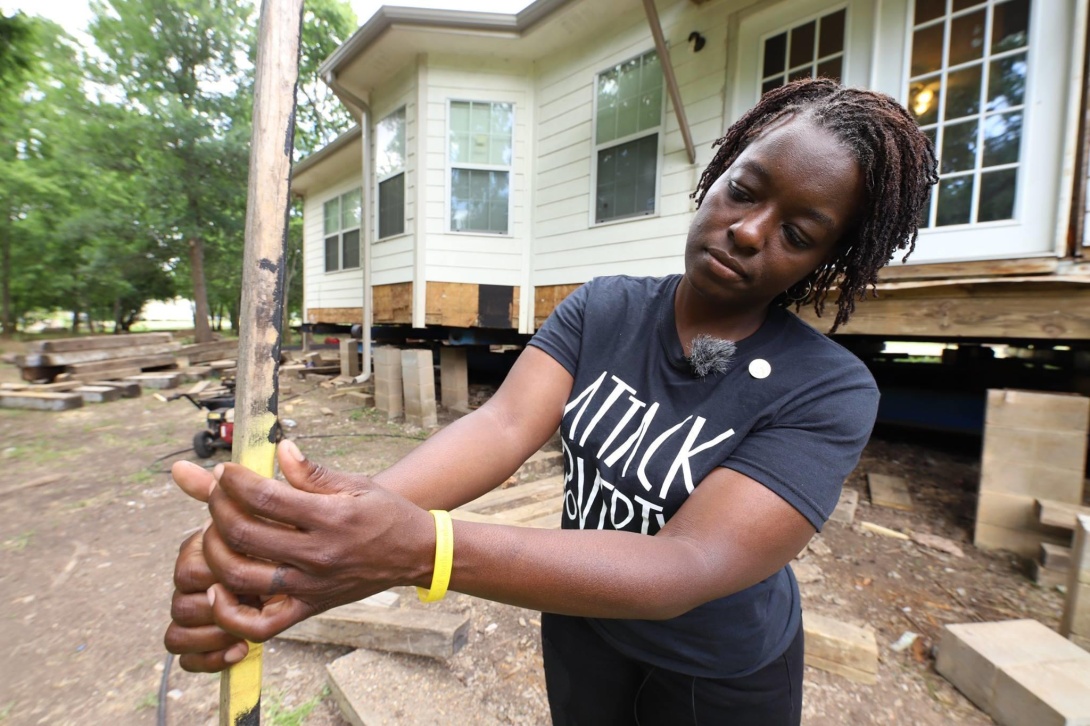 Rose Pickens of Rosenberg, Texas, works on her home in the wake of Hurricane Harvey in 2017. A survey done following that disaster documented racial disparities in the distribution of FEMA aid. (FEMA photo via the agency's website.)