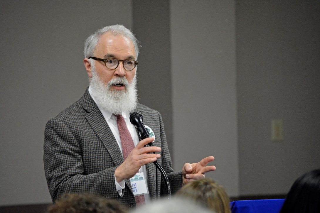 Jim Carnes, the policy director for Alabama Arise, is seen here speaking at the anti-poverty coalition's annual legislative advocacy day in 2018. He recently talked with Facing South about what this year's election could mean for poor people's access to health care in his state. (Photo courtesy of Alabama Arise.)