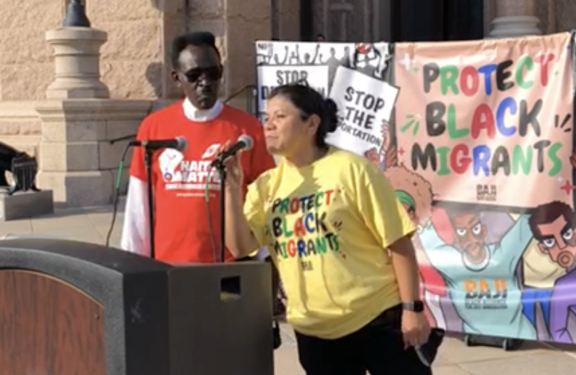 Earlier this month immigrant advocacy organizations held a rally in Texas to demand action on the abuse of Black migrants. (Image is a still from this Black Alliance for Just Immigration video.)