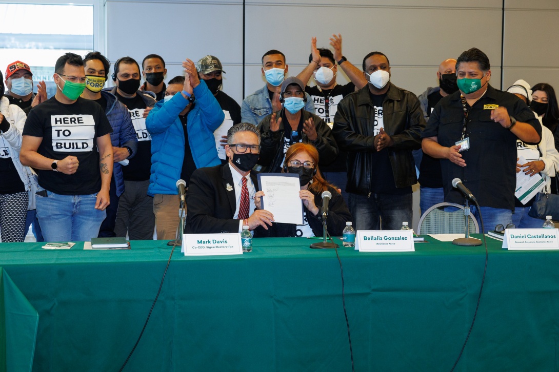 In a pilot project conducted in New Orleans during the COVID-19 pandemic, number of unemployed workers Resilience Force recruited for its local Resilience Corps to support the community's pandemic response while paying them substantially more than the local minimum wage: 60