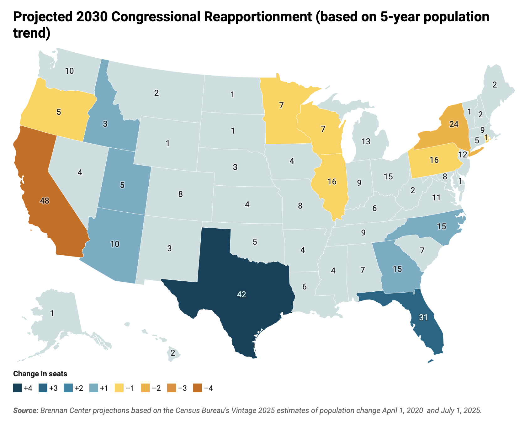The South’s gains will come largely at the expense of the Northeast, the upper Midwest, and California; three Mountain West states could also gain up to three seats.
