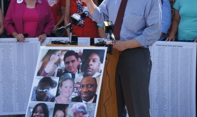 A new study from the watchdog group Democracy North Carolina estimates that tens of thousands of would-be voters were prevented from casting ballots or having them count in last year's elections due to a restrictive voting law passed in 2013. The law is being challenged in federal court, with arguments set to begin next month.