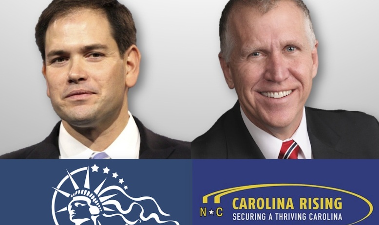 Two "social welfare" nonprofits that supported Marco Rubio and Thom Tillis in federal elections have been accused of violating a law that bars such groups from putting most of their resources towards political campaign activities. A watchdog group filed complaints with the IRS this week.